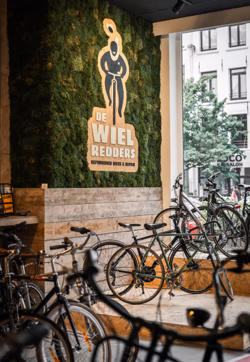 In 2021, Werkmmaat launched the socio-economic bike shop 'De Wielredders'. The idea is simple yet powerful: abandoned bikes are refurbished and resold, with upcycling at the core of their approach. This project not only gives bikes a second life but also provides employees with the opportunity to develop new skills and transition into the regular job market. Three years later, in 2024, the store has outgrown its space, leading to the Antwerp branch moving to a larger location, and a second branch opening in Lier.