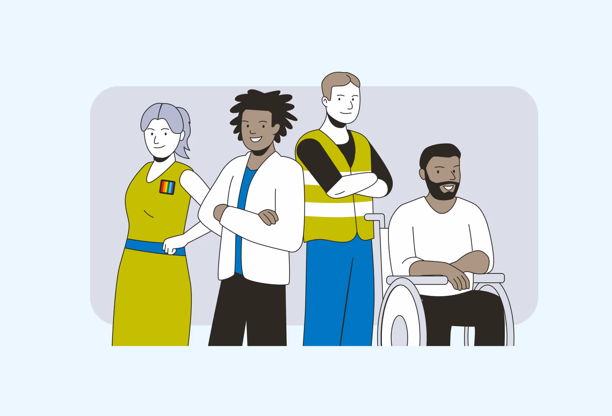Onze oplossing: een nieuwe illustratiestijl die we speciaal voor IDEWE creëerden – helder, hedendaags en inclusief, met een karakter dat meteen aanspreekt. Deze stijl vormt de rode draad doorheen hun visuele communicatie en sluit beter aan bij de leefwereld van hun doelgroep. Het geheel is breed inzetbaar: van EHBO-cursussen tot workshops inclusieve communicatie en awareness-campagnes rond mentaal welzijn. Niet gebonden aan één dienst, maar afgestemd op de volledige IDEWE-wereld. We gaven het bestaande materiaal ook een moderne upgrade en bedachten nieuwe manieren om abstracte concepten herkenbaar in beeld te brengen. Een goed gekozen illustratie maakt zelfs de meest complexe onderwerpen in één oogopslag begrijpelijk. De nieuwe illustratiestijl vormde daarnaast de basis voor aantrekkelijke animaties waarmee ze hun campagne rond ‘communicatie op het werk’ extra schwung konden geven.